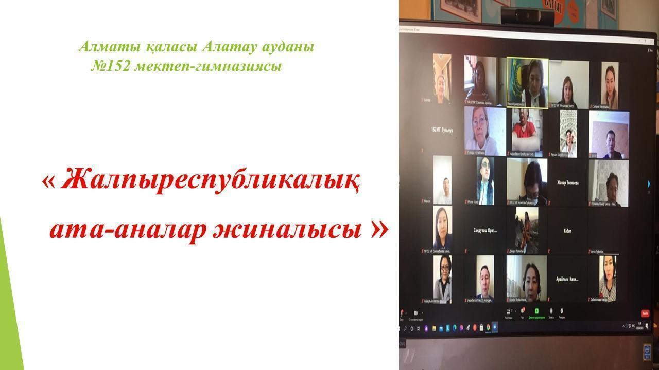 Алматы қаласы Алатау ауданы №152 мектеп-гимназиясында 22.05.2021 ж күні 1-11 сынып оқушыларының ата-аналарына жалпыреспубликалық ата-аналар жиналысы өткізілді.