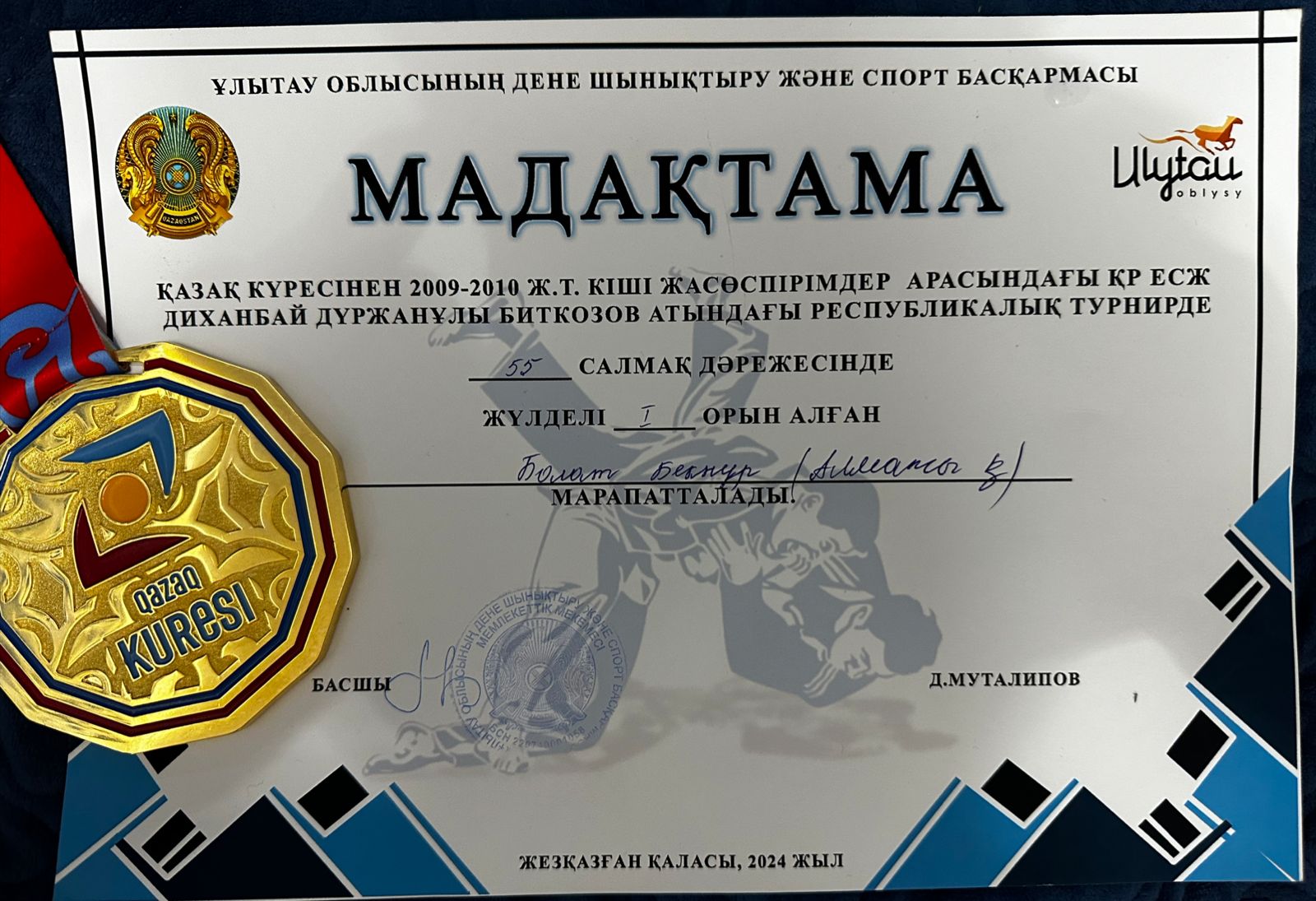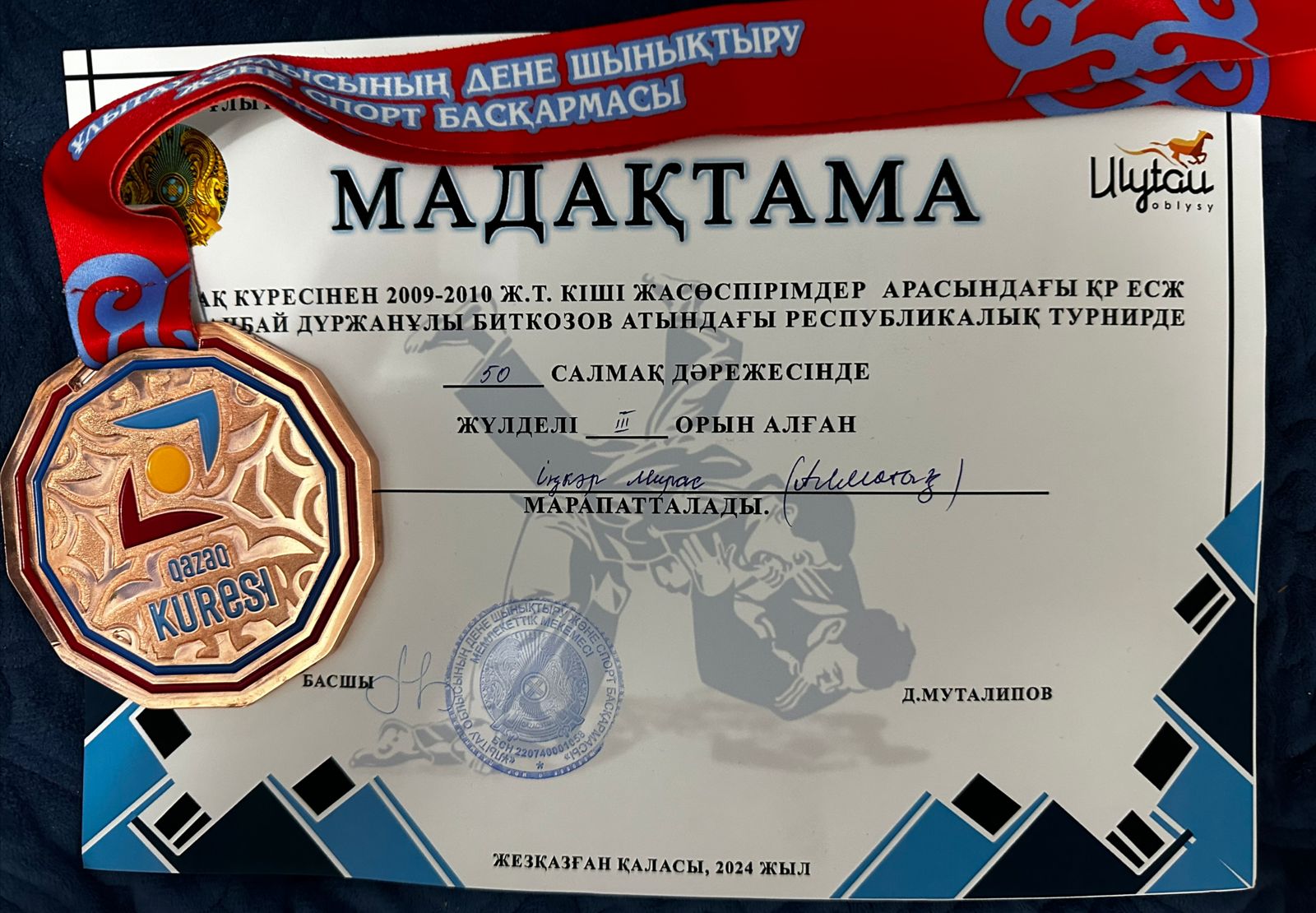 Ұлытау облысы Жезқазған қаласында өткен қазақ күресінен 2009-2010 ж.т. кіші жасөспірімдер арасындағы ҚР ЕСЖ Диханбай Дүржанұлы Биткозов атындағы республикалық турнирде біздің мектебіміздің оқушылар жүделі орындармен марапатталды.