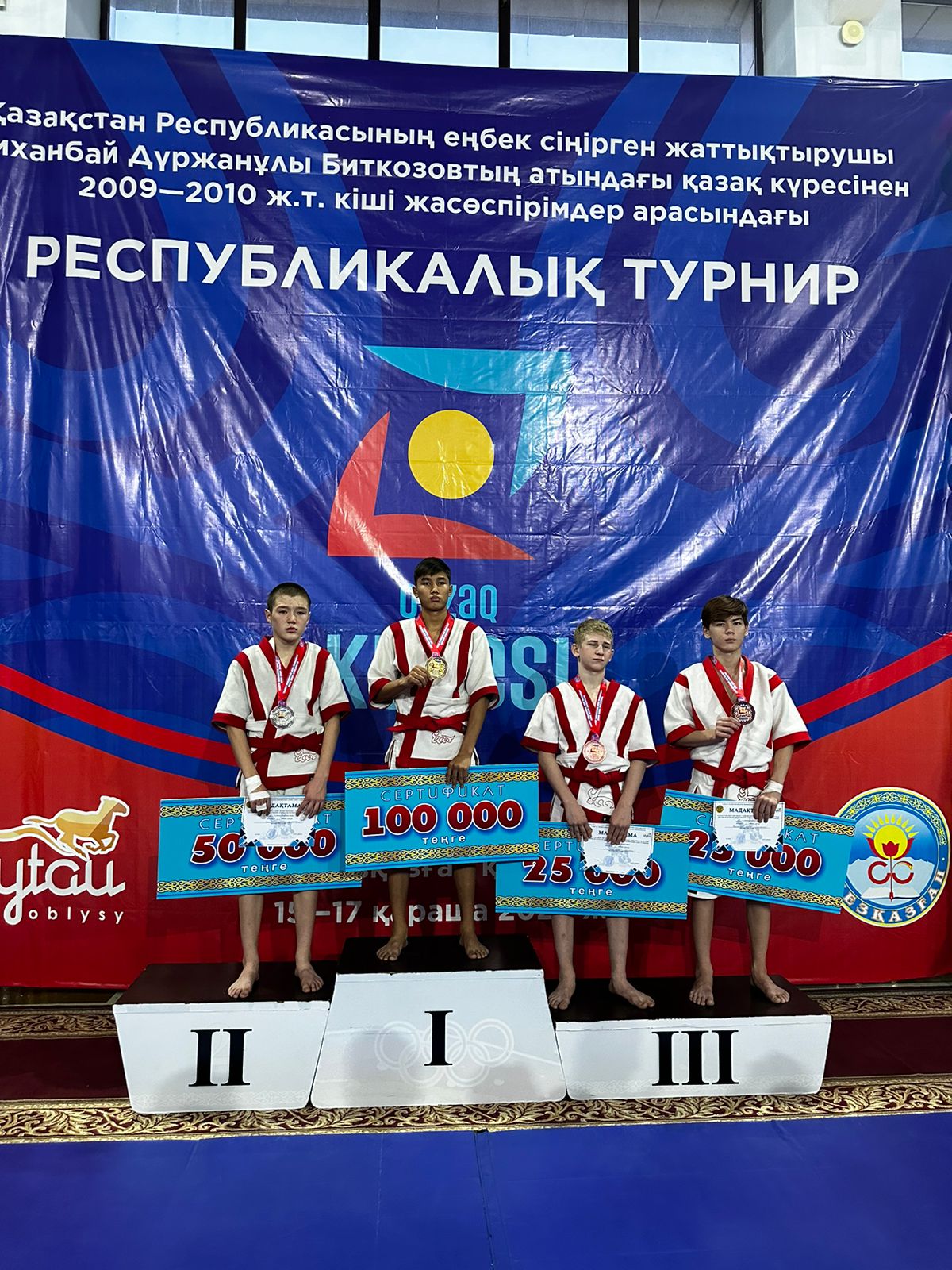 Демонстрационный сайт152 мектеп » Ақпарат » Ұлытау облысы Жезқазған қаласында өткен қазақ күресінен 2009-2010 ж.т. кіші жасөспірімдер арасындағы ҚР ЕСЖ Диханбай Дүржанұлы Биткозов атындағы республикалық турнирде біздің мектебіміздің оқушылар жүделі орындармен марапатталды.