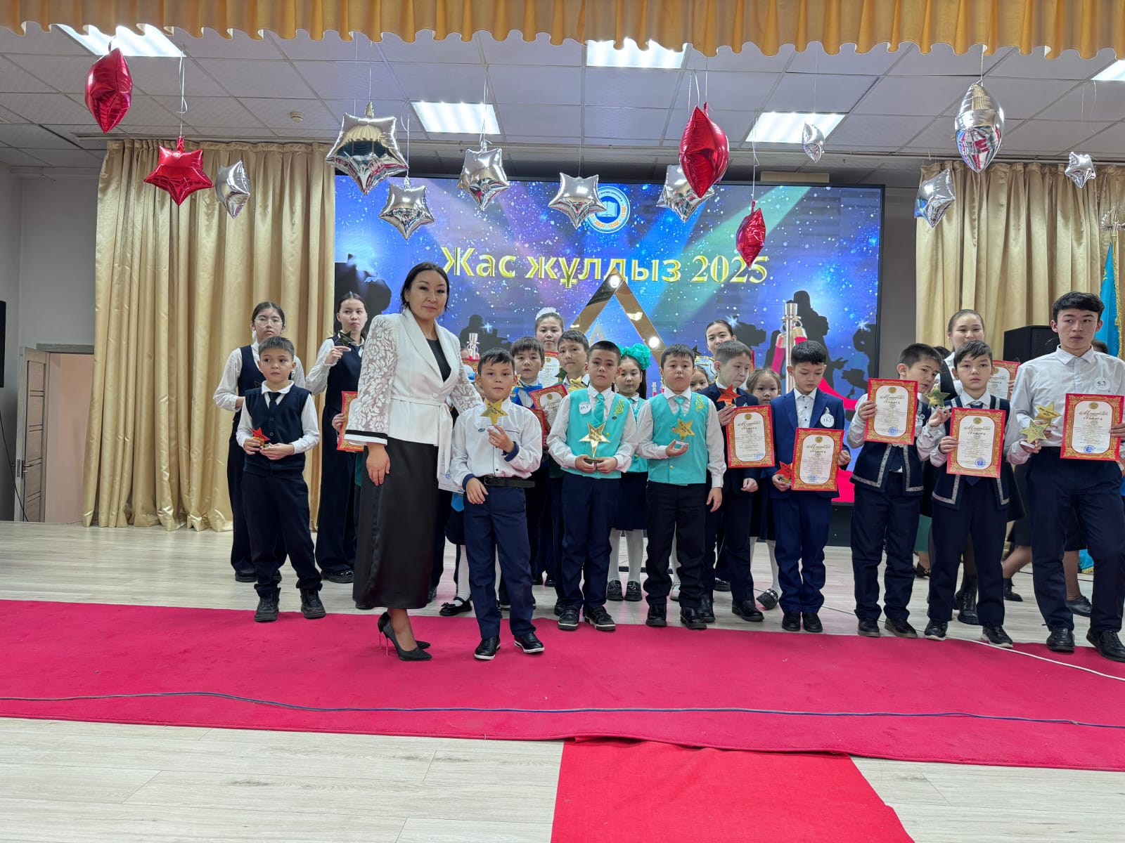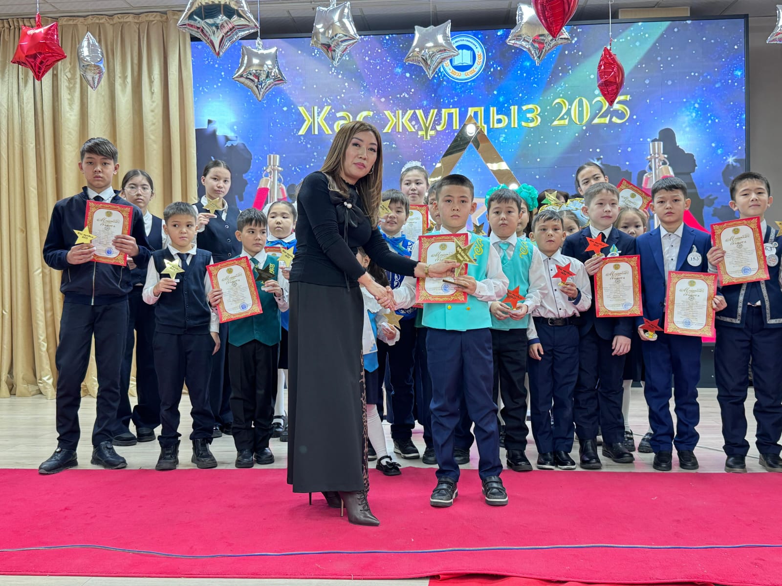 152-мектеп-гимназиясында “Жас жұлдыз-2025 жұлдыздар шеруі” өткізілді ✨Мақсаты: дарынды, білімге құштар оқушыларды қолдау, олардың жетістігін бағалау және болашаққа деген сенімін нығайту.Бұл шара барысында оқу мен шығармашылықта, спорт пен қоғамдық өмірде ерекше жетістікке жеткен жас жұлдыздар марапатталды. Сонымен қатар, бала тәрбиесіне айрықша үлес қосып, перзенттерінің жетістігіне әрдайым қолдау көрсетіп жүрген дарынды оқушылардың ата-аналары да арнайы марапатқа ие болды.