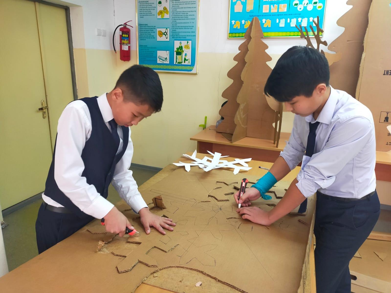 Шәкірттерімен бірге қағаз қалдықтарынан әр түрлі шығармашылық туындылар жасау арқылы оқушыларды икемділік пен шеберлікке тәрбиелеп, қалдық заттарға екінші өмір сыйлауды көркем еңбек пәні мұғалімдері естен шығарған емес.