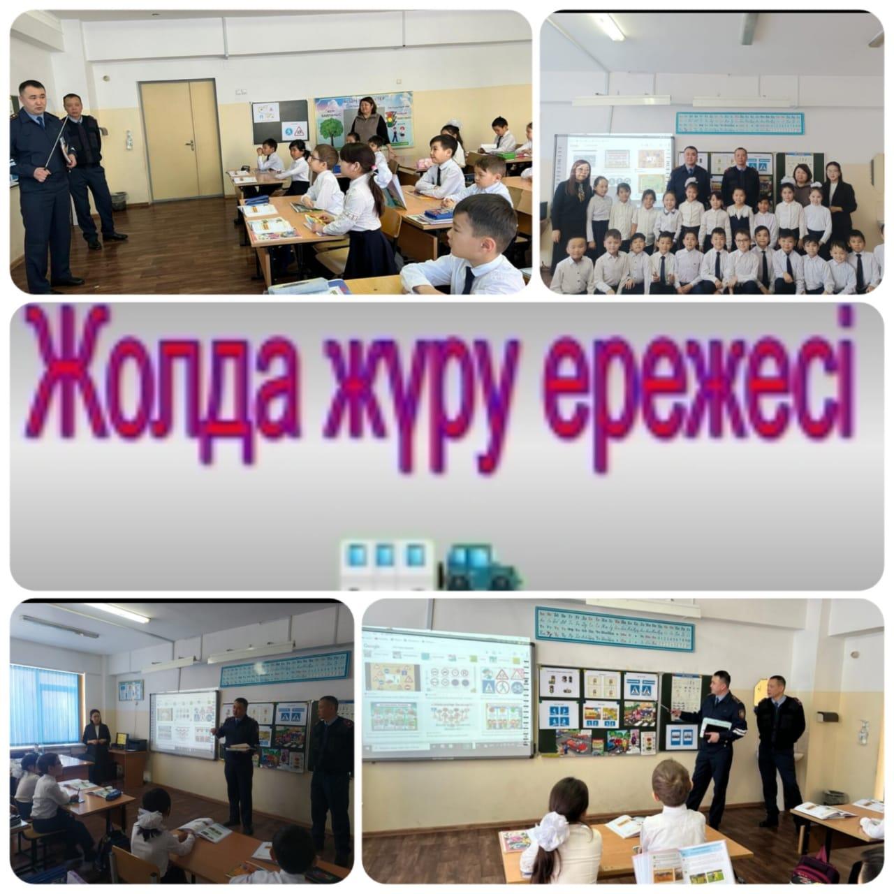 Мектеп инспекторы және мектеп әкімшілігімен бірігіп, жолда жүру ережесі және өмір қауіпсіздігі туралы өткізілген отырыстың анықтамасы.