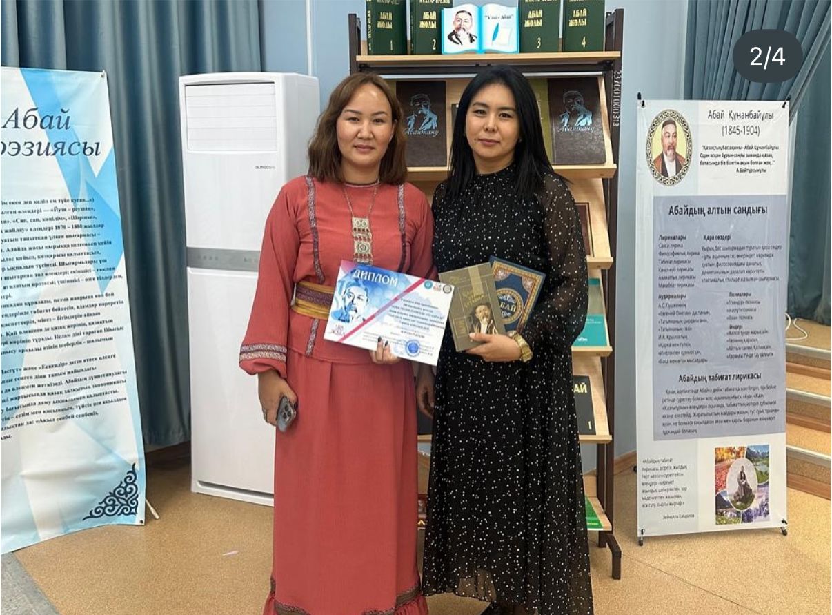 Алатау ауданының ұйымдастырумен Қазақ халқының бас ақыны Абай Құнанбайұлының 180 жылдық мерейтойына орай ұстаздар арасында «ӨЛЕҢ СӨЗДІҢ ПАТШАСЫ…» атты аудандық Абай оқулары байқауының «Әнді сүйсең менше сүй» номинациясында Абайдың әнін жанды дауыста орындаған дене шынықтыру пәнінің мұғалімі Бақытбек Мөлдір І орын жүлдесімен марапатталды.
