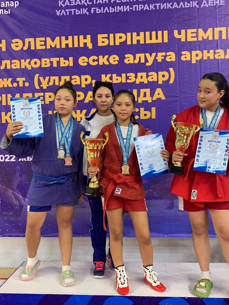 Самбо күресінен жасөспірімдер арасындағы республикалық жарыста Алдарбаева Зарина 1 - орын Қанат Назерке 2- орын Мұхтарқызы Ақниет 3-орын алды ! Тараз қаласы