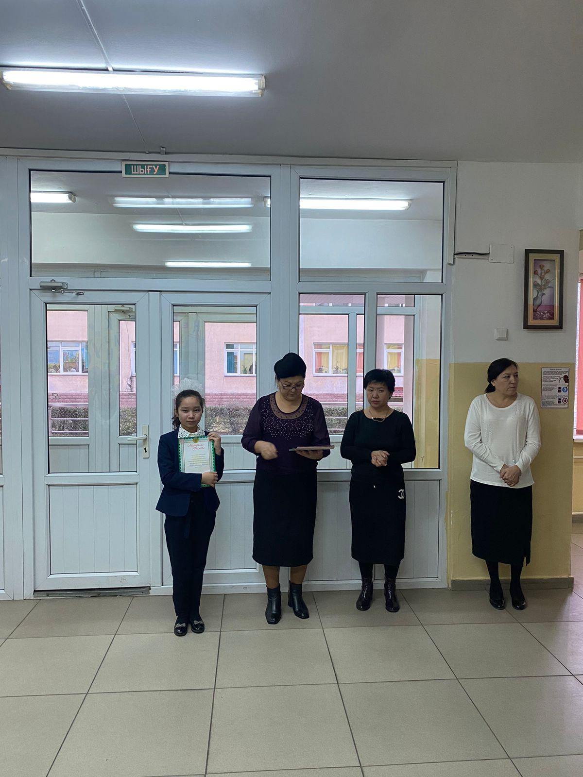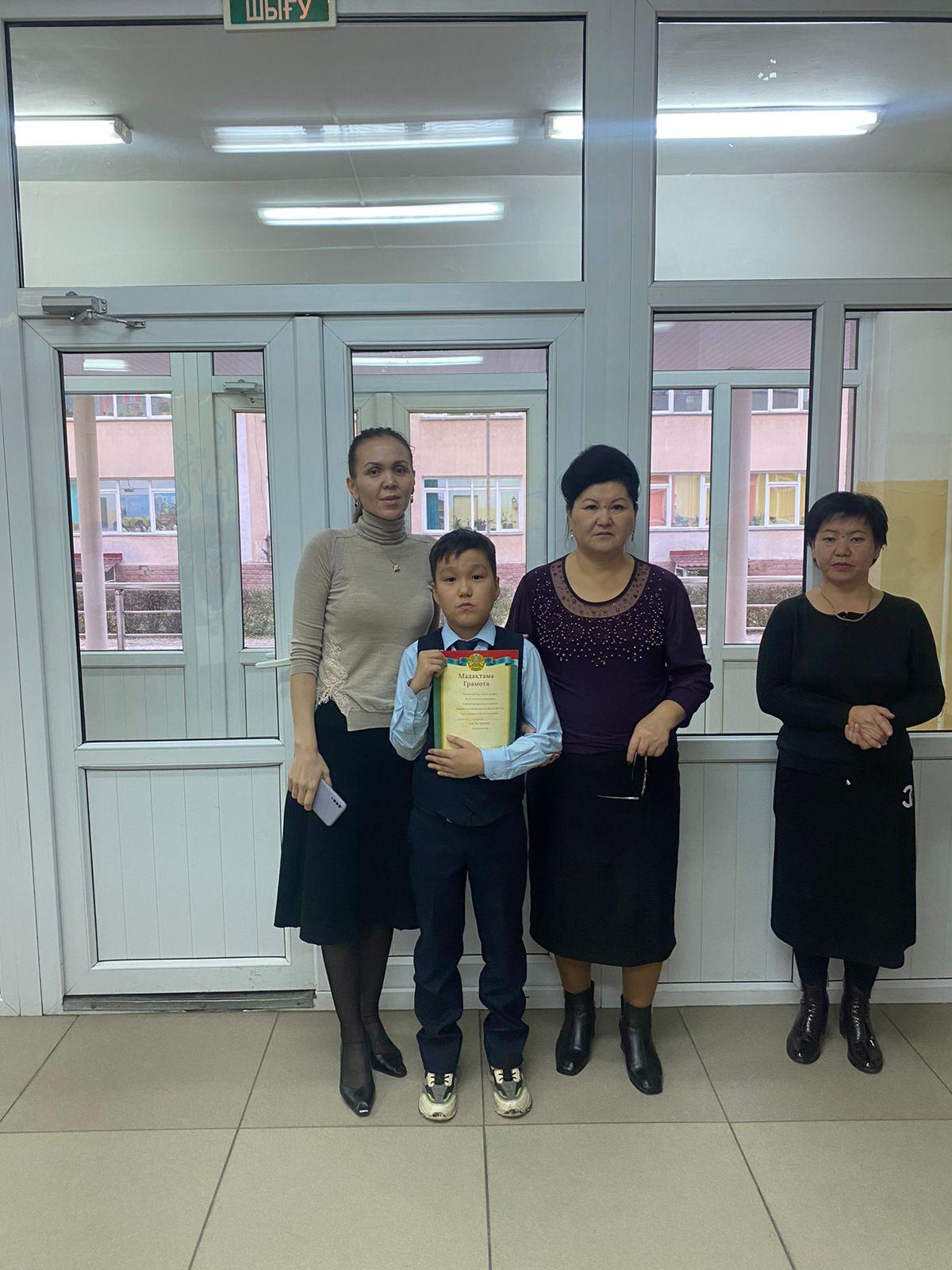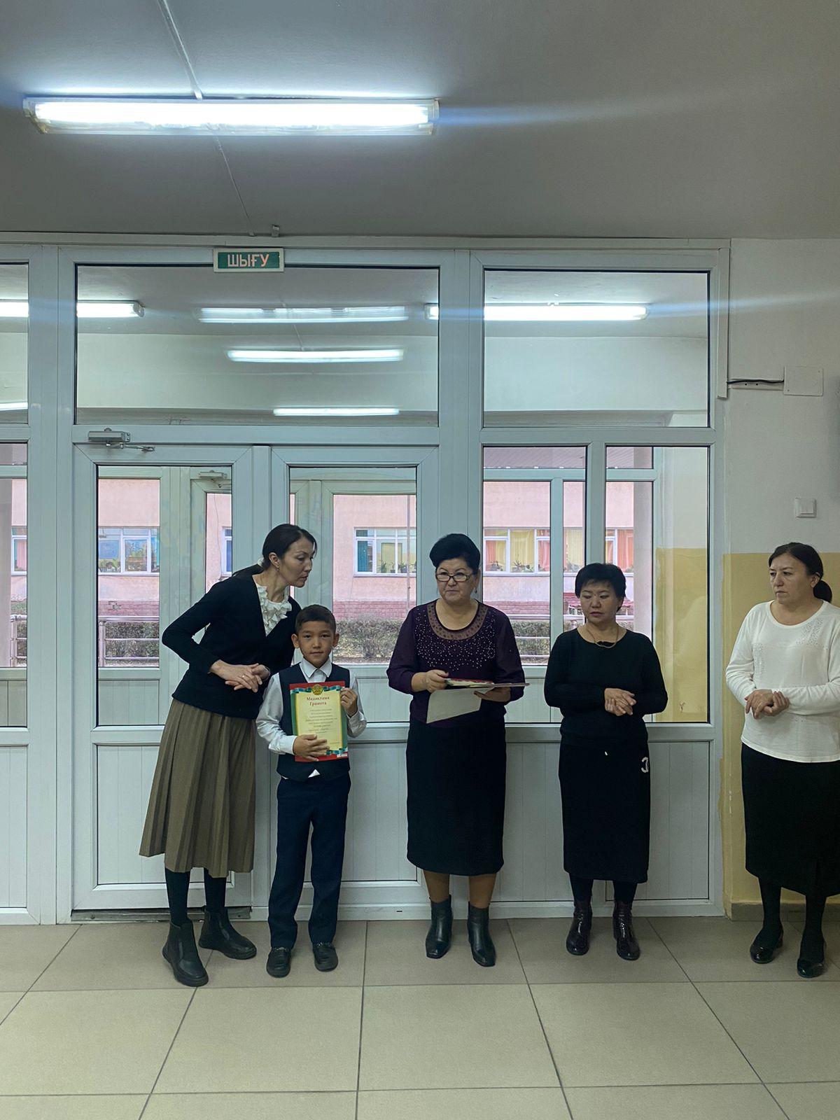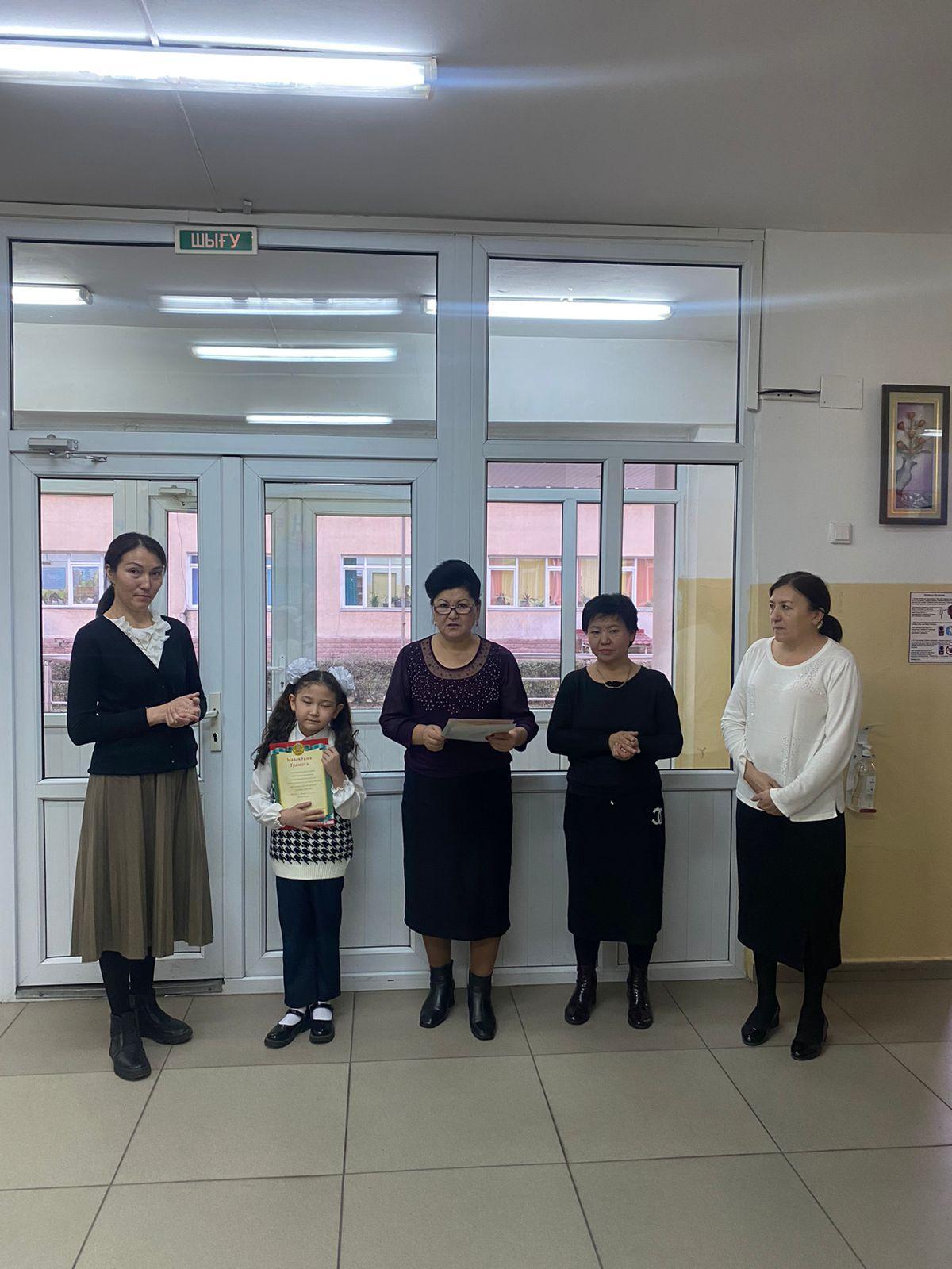 4-сыныптар арасында ұйымдастырылған Абайдың “Қараша, желтоқсан мен сол бір-екі ай”өлеңіндегі көріністі бейнелеу сайысында Бас жүлдені жеңіп алған Марат Марлен,І-орынды Күркебай Ақнұр,ІІ -орындармен Ибдамова Хадия және Ерзаманұлы Бердібек марапатталды