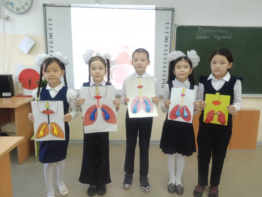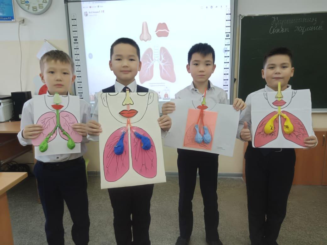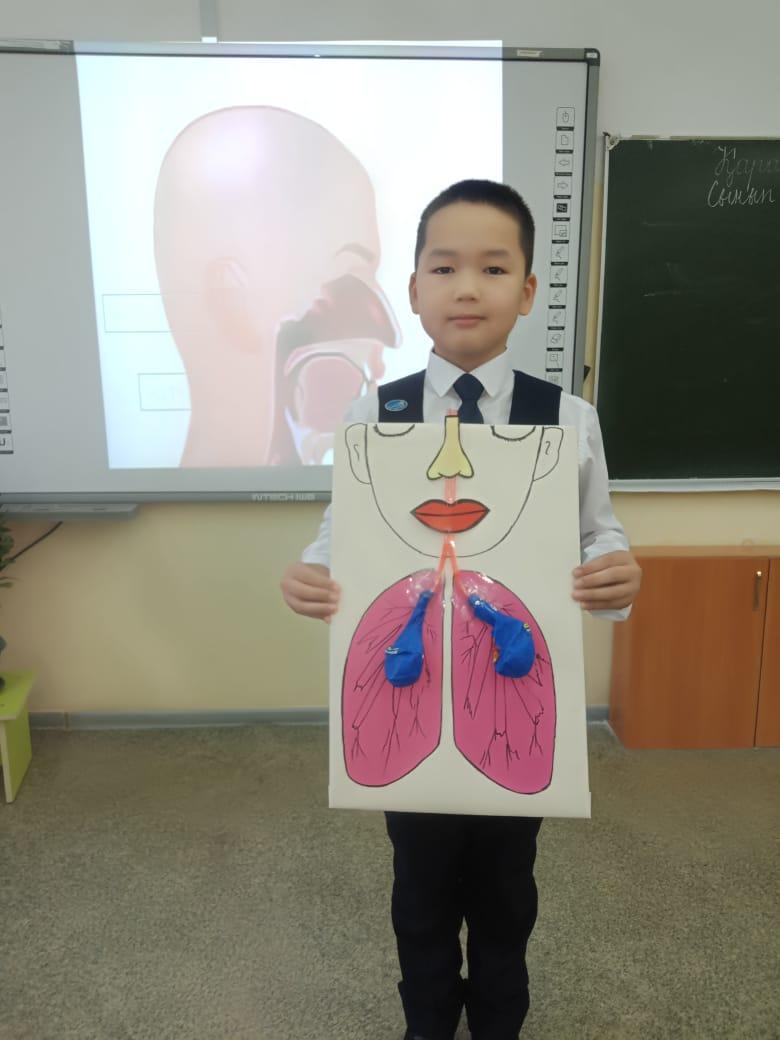 Сабақтың мақсаты:оқушылар тыныс алу мүшелері және олардың қызметімен танысады.Адамның ішкі ағзаларының орналасуын біледі.