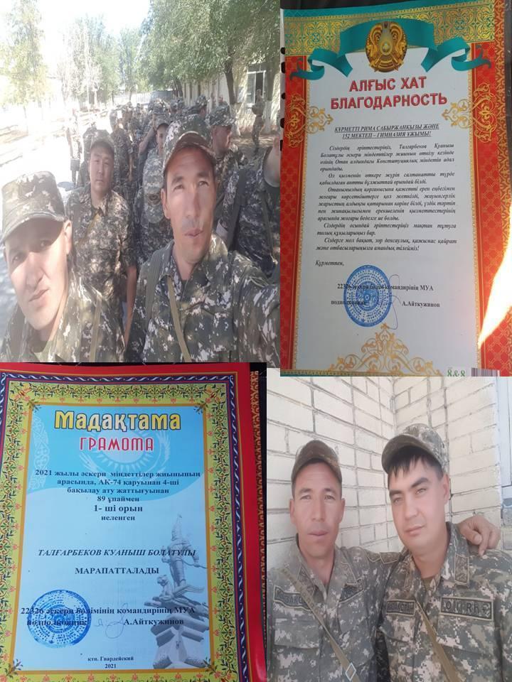 Қуаныш Болатұлытамыз – қыркүйек айларында "Әскери мiндеттiлер жиынында" болып, Отан алдындағы Конституциялық мiндетiн өте үлкен жауапкершілік, үздік тәртіп, жауынгерлік рухымен атқарып, өзгелерге үлгі бола бiлдi!