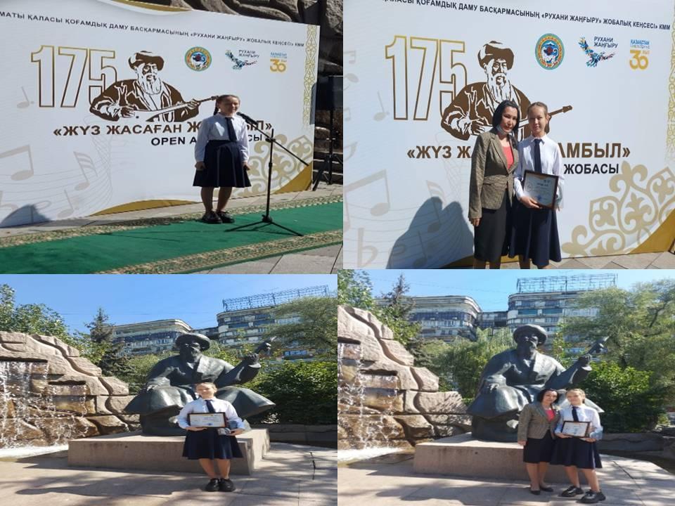 Тәжірибелі ұстаз Оспанова Ақбота Ахметжанқызының дарынды оқушыны танып, оны шыңдаудағы шеберлігі өте жоғары. Жаңа оқу жылынкөшбасшы маман жаңа нәтижемен бастады. Жыр додаларына дайындап жүрген 8 - сыныптың дарынды оқушысы Аяулым Талеттi жыр алыбы Жамбыл Жабаевтың туғанына 175 толуына орай "Жүз жасаған Жамбыл" тақырыбымен Open Air жобасы аясында ұйымдастырылған тамаша ic- шараға қатыстырып, шыңдап алды.