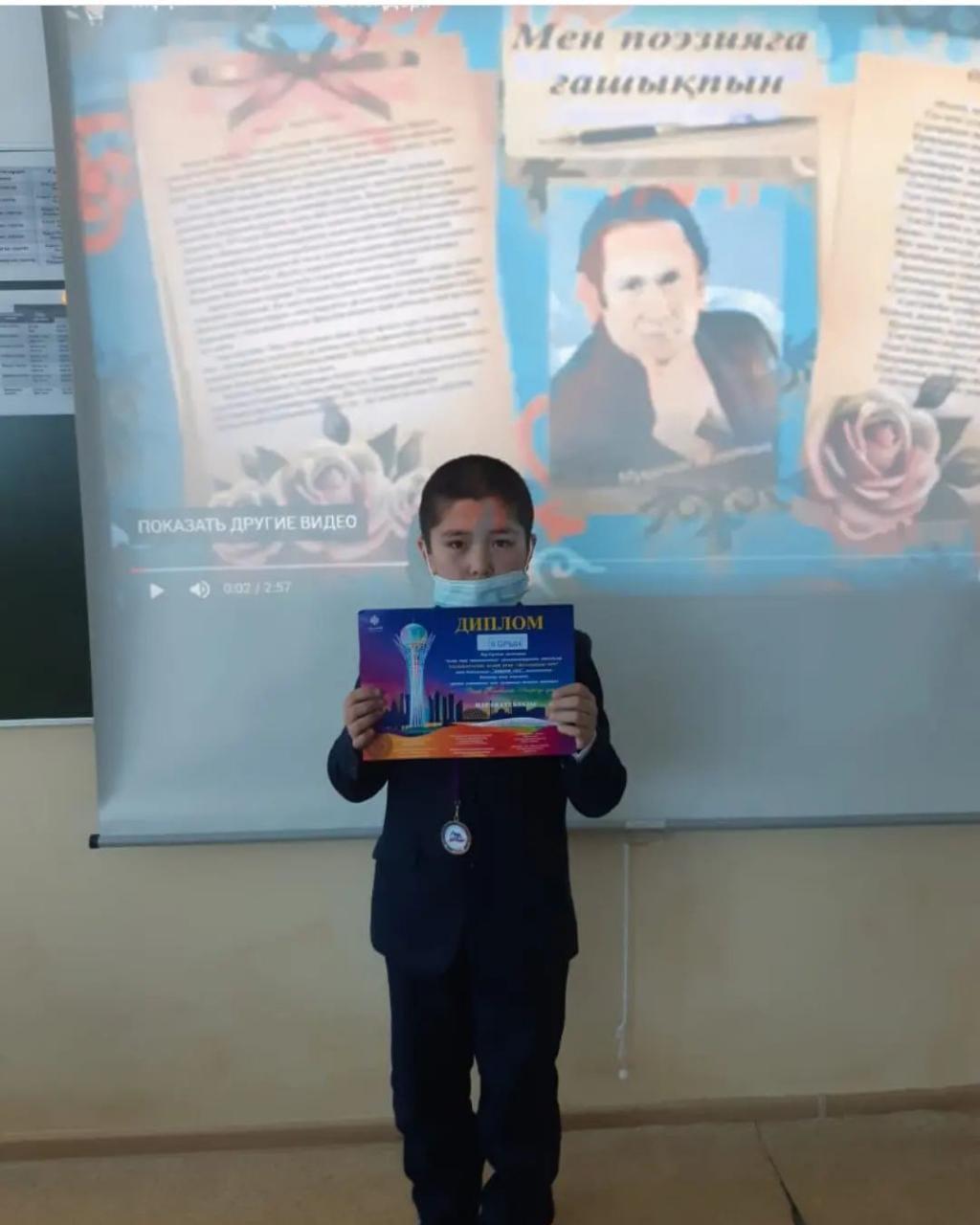 Демонстрационный сайт152 мектеп » Біз туралы » Әдістемелік жұмыстар » Әшір Жанболат Нұр-Султан қаласына барып Мұқағалидің 91 жылдығында өлең оқып 9-11 жас аралығында өнер көрсетіп 2 орын иеленіп мектебіміздің атын паш етіп келді.Әлі алар асуы алда оқушымның 4 Д сынып мұғалімі Мухаметжанова Асель Касенканқызы