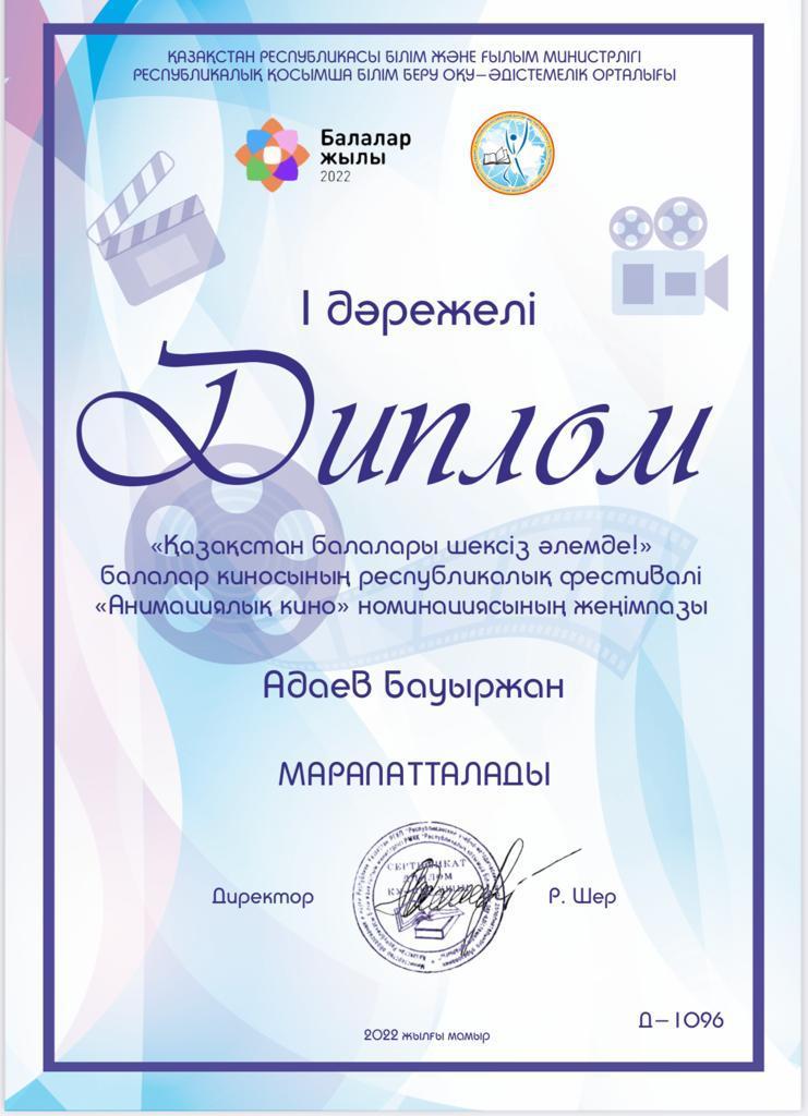 152 мектеп - гимназия оқушылары мен ұстаздары киноәлемiнде де өз қолтаңбаларын қалдыруда! ҚР Білім және ғылым министрлігі Қосымша білім беру оқу - әдicтемелiк орталығының ұйымдастыруымен өткен "Қазақстан балалары шексіз әлемде!" атты балалар киносының республикалық фестивалінде "Анимациялық кино" номинациясы бойынша 11 сыныптың дарынды, креативтi, өнертапқыш оқушысы Адаев Бауыржан 1 Дәрежелі диплом иегері атанды. Дарынды даралай, бағыттай бiлген жетекшici Сүлейменова Фарида Нүсібәлiқызының еңбегiне шығармашылық табыс, Бауыржанның табанды еңбегіне толағай табыс, жарқын болашақ тiлеймiз! Ұстаз бен шәкірттің бiрлескен жұмыстары жарқырап, мектеп - гимназия мерейiн асқақтата берсін!