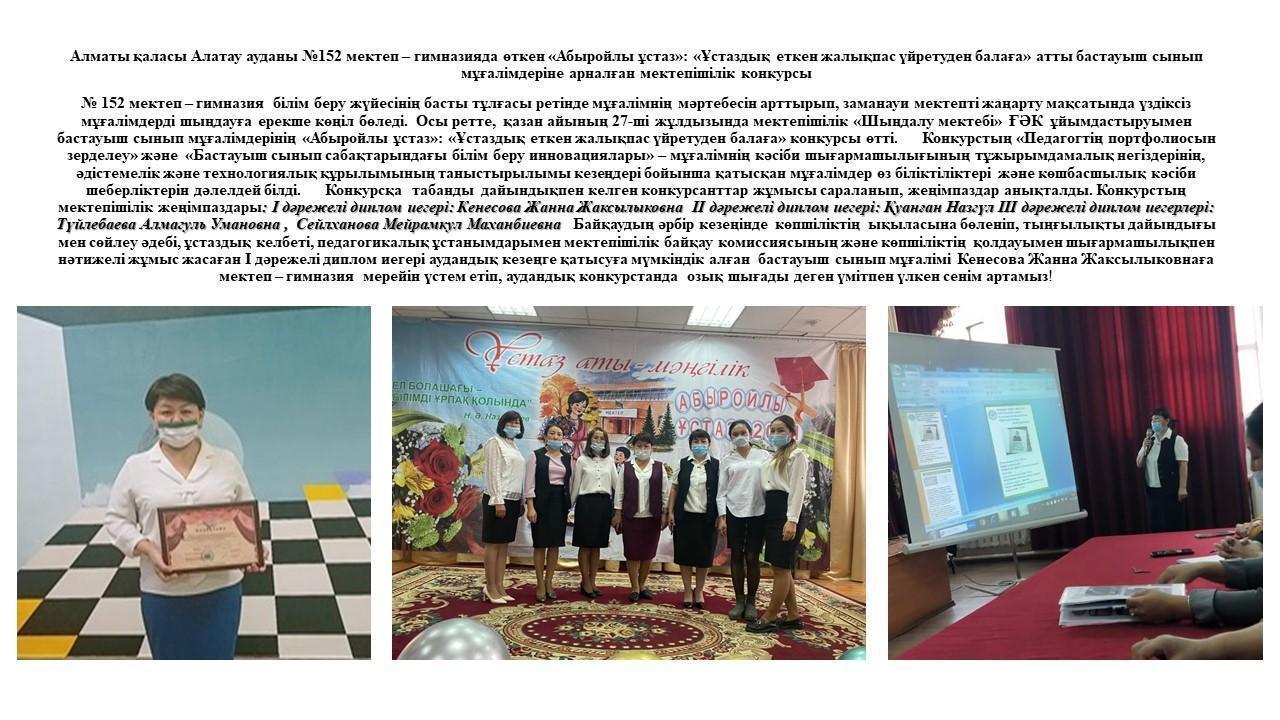 27 октябрь 2021 0 1 2 3 4 5 «Абыройлы ұстаз» , «Ұстаздық еткен жалықпас үйретуден балаға» атты бастауыш сынып мұғалімдеріне арналған мектепішілік конкурсы Осы беттің QR-коды:QR-код этой страницы: