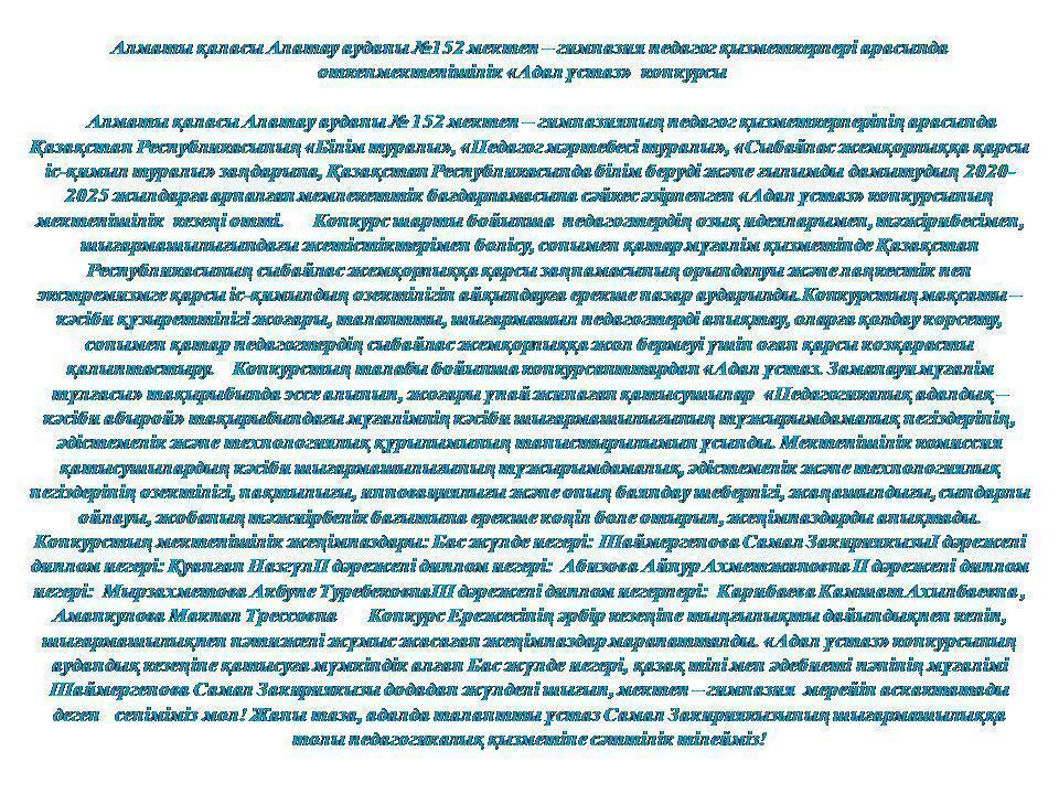 08 ноябрь 2021 0 1 2 3 4 5 Мектепшілік «Адал ұстаз» конкурсы Осы беттің QR-коды:QR-код этой страницы: