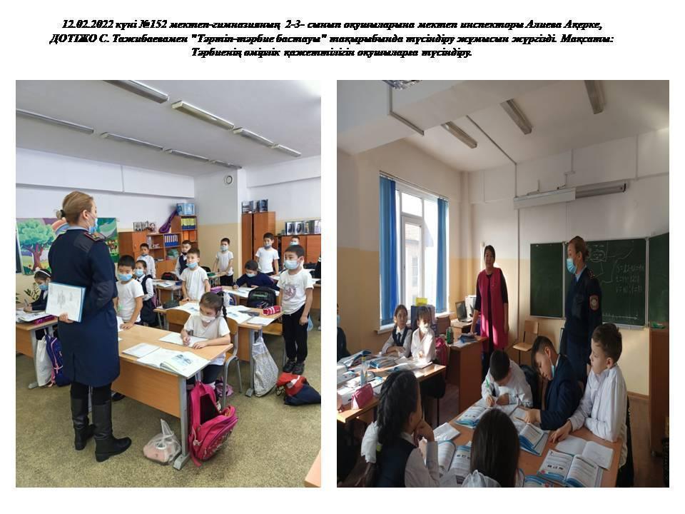 12 февраль 2022 0 1 2 3 4 5 12.02.2022 күні №152 мектеп-гимназияның 2-3- сынып оқушыларына мектеп инспекторы Алиева Ақерке, ДОТІЖО С. Т Осы беттің QR-коды:QR-код этой страницы: