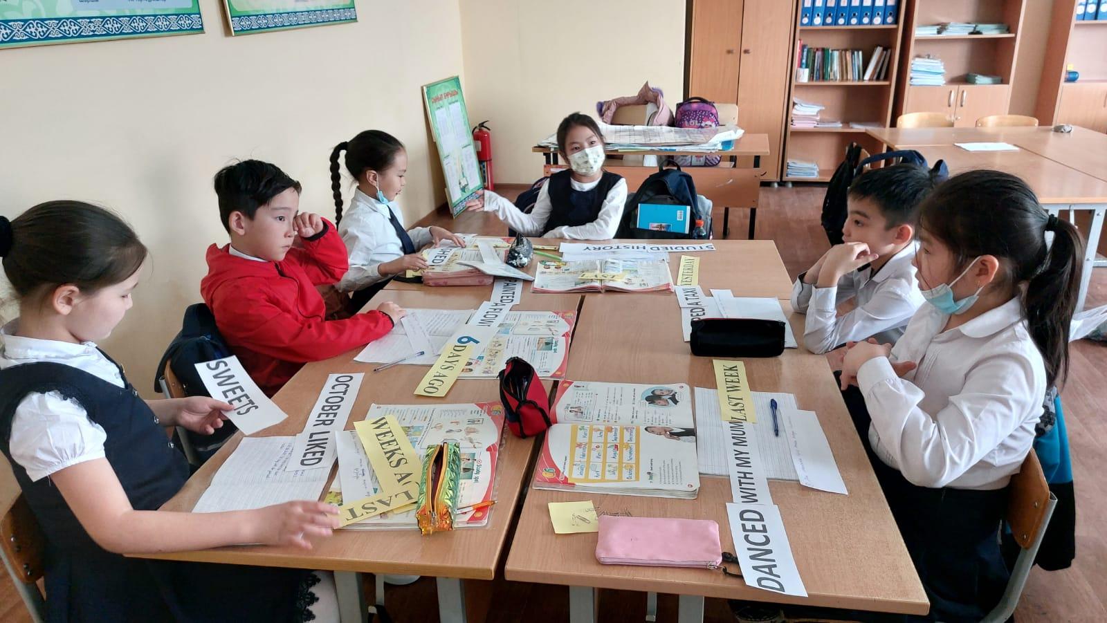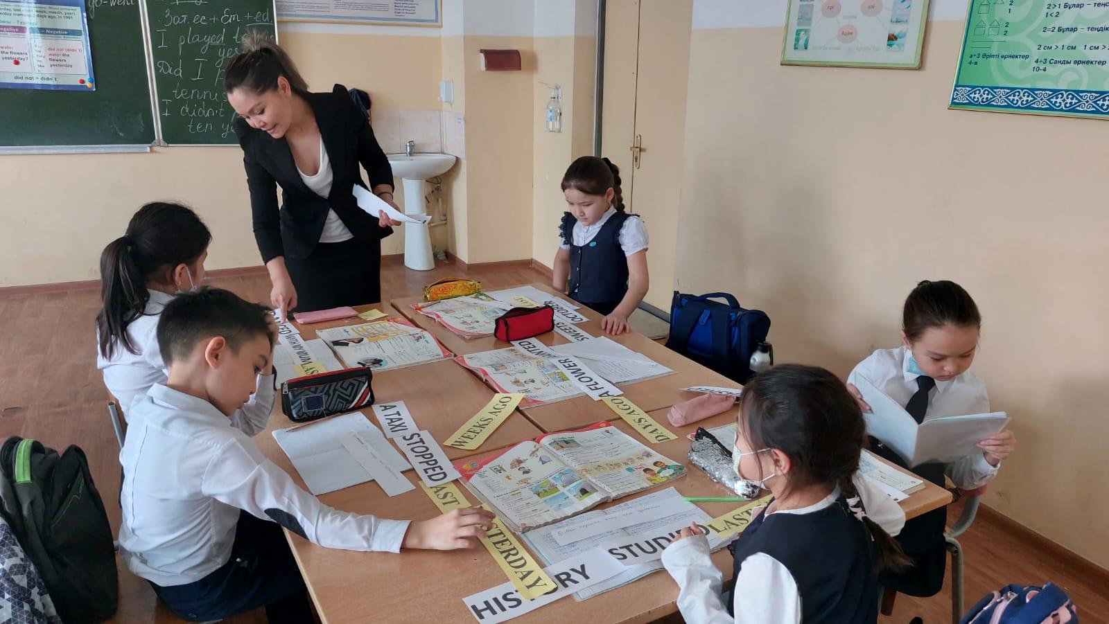 152 мектеп-гимназияның ағылшын тілі пәні мұғалімі Үркімбаева Д.Б. 25.02.2022 ж. 3 М сыныбына "Past Simple" тақырыбына ашық сабақ өткізді. Сабақтың мақсаты: Жай осы шақ "Present Simple" мен Жай Өткен шақ "Past Simple" салыстыра отырып, өткен шақтың жасалу ережелерімен таныстыру, көмекші модалды етістіктің көмегімен жай сөйлемнен сұраулы және болымсыз сөйлемдер жасауды үйрету. Дұрыс және бұрыс етістіктерді түсіндіру. Кері байланыс ретінде оқушыларға карточкалар таратылып, өткен шаққа сөйлем құрау үшін оқушылар топқа бөлініп, жылдамдыққа және сөйлемнің дұрыс құрылуына жарысты.