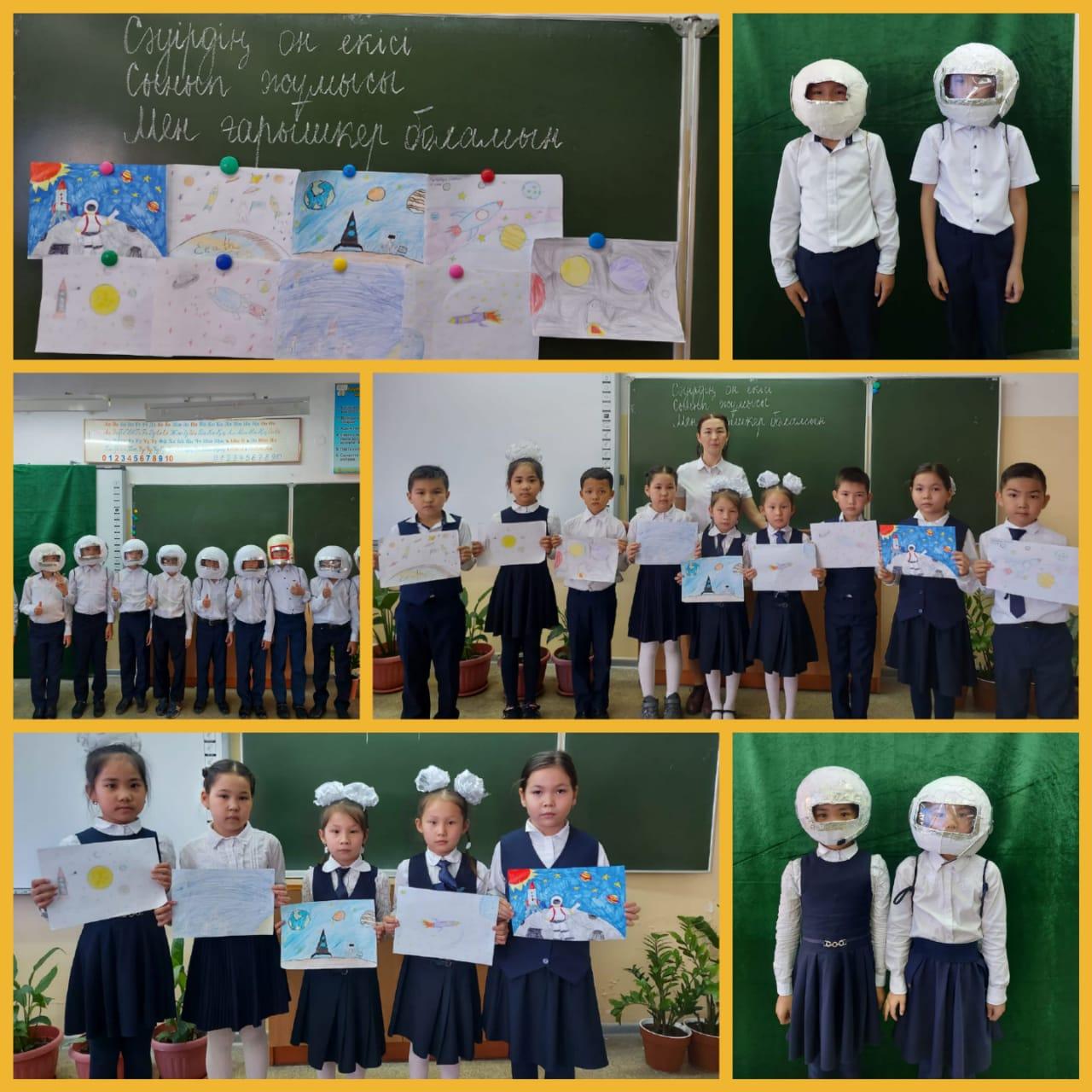 Мақсаты: 1.Оқушыларға ғарыш әлемі туралы түсінік бере отырып, алғаш самғаған әлемдік және қазақтандық ғарышкерлер туралы мағлұмат беру.