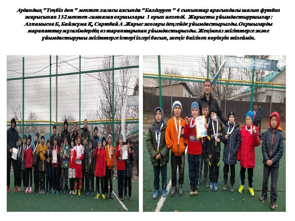 17 ноябрь 2021 0 1 2 3 4 5 Аудандық "Теңбіл доп " мектеп лигасы аясында "Балдәурен " 4 сыныптар арасындағы шағын футбол жарысы. Осы беттің QR-коды:QR-код этой страницы:
