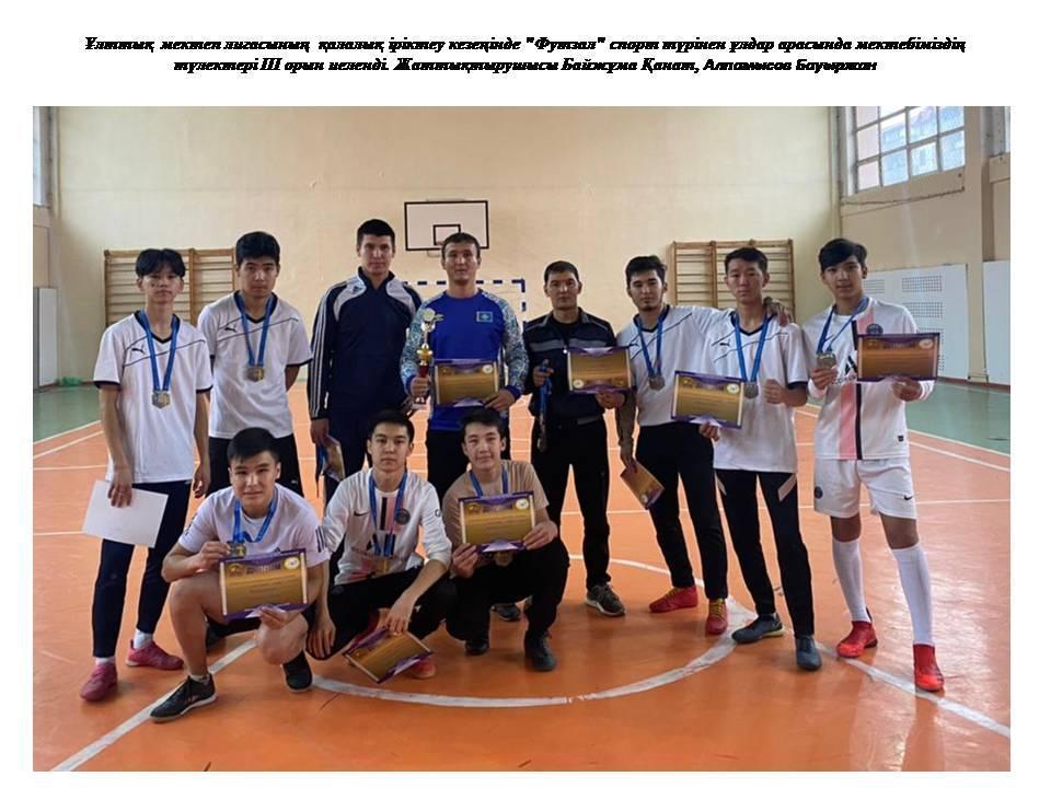 29 ноябрь 2021 0 1 2 3 4 5 Ұлттық мектеп лигасының қалалық іріктеу кезеңінде "Футзал" спорт түрінен ұлдар арасында мектебіміздің түлектері ІІІ орын иеленді. Осы беттің QR-коды:QR-код этой страницы: