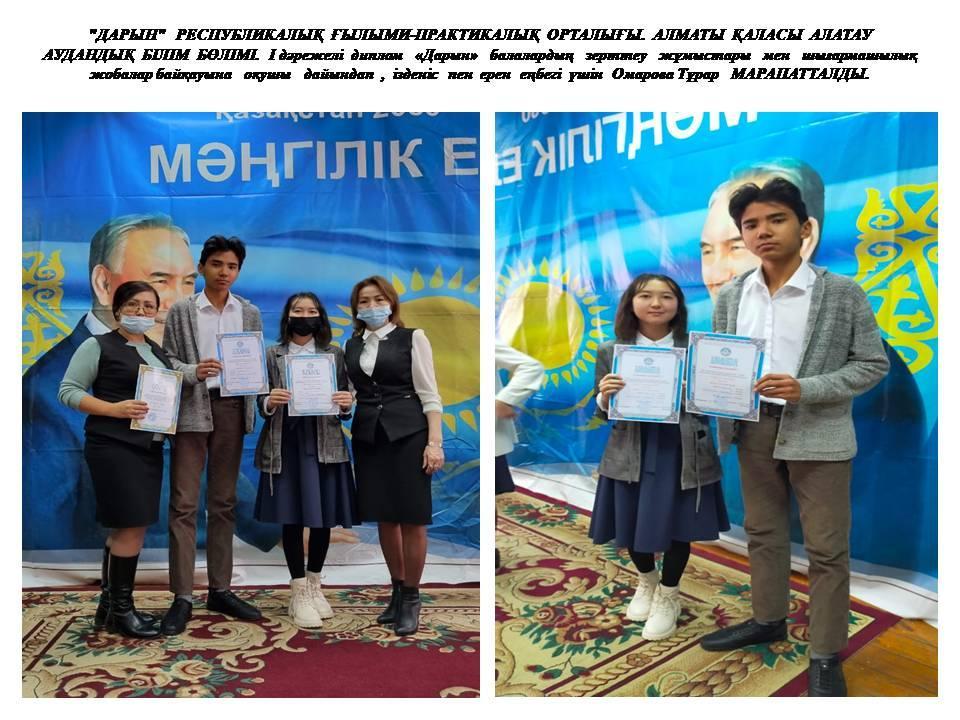 30 декабрь 2021 0 1 2 3 4 5 «Дарын» балалардың зерттеу жұмыстары мен шығармашылық жобалар байқауына оқушы дайындап , ізденіс пен ерен еңбегі үшін Омарова Тұрар МАРАПАТТАЛДЫ. Осы беттің QR-коды:QR-код этой страницы: