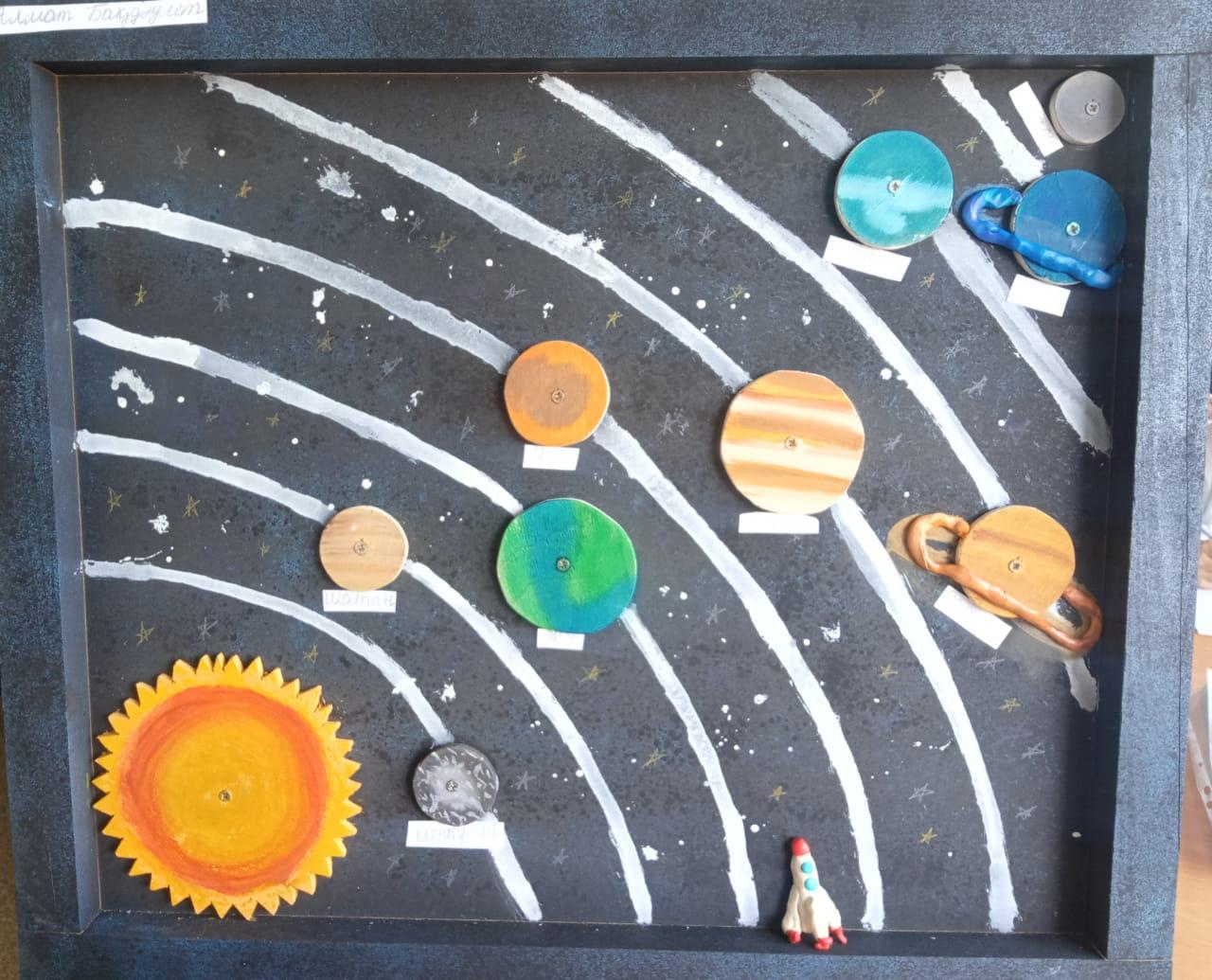 Жаратылыстану пәнінен " Ғаламшарлар қалай орналасқан?" тақырыбы бойынша 2"Д" сынып оқушысы Алмат Бақдәулет Күн жүйесіндегі ғалашарлар улгісін жасады.