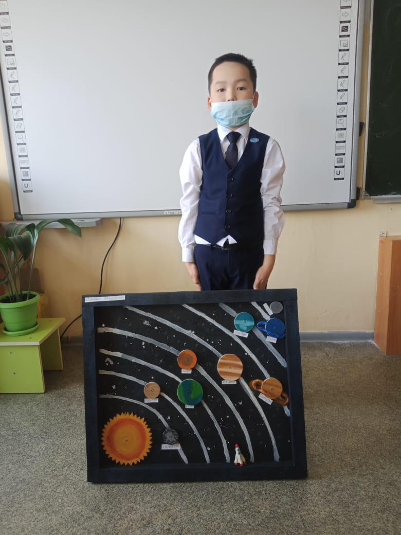 Жаратылыстану пәнінен " Ғаламшарлар қалай орналасқан?" тақырыбы бойынша 2"Д" сынып оқушысы Алмат Бақдәулет Күн жүйесіндегі ғалашарлар улгісін жасады.Ғаламшарлардың ретін анықтап,өз ойын айтып жеткізді. Сынып жетекшісі: Кенесова Жанна Жаксылыковна