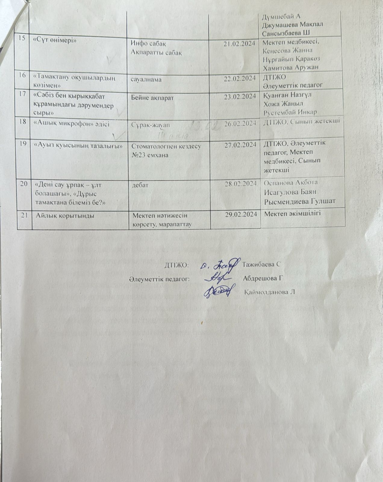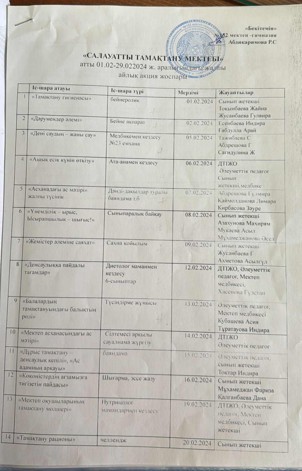 Тамақтану сапасының мониторинг жүргізу жөніндегі комиссияның жұмыс жоспары.