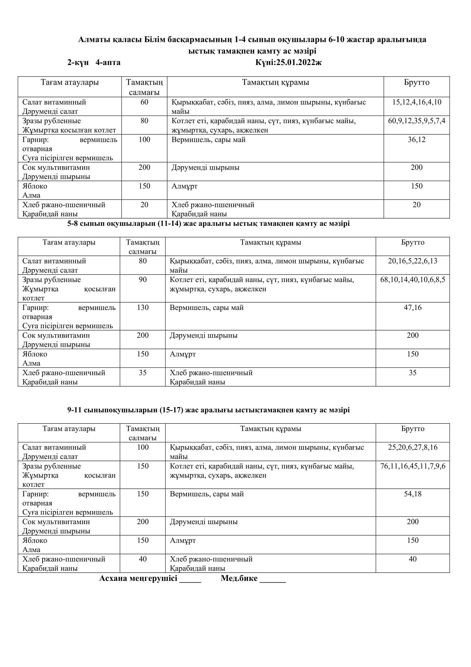 Меню на 25.01.2022
