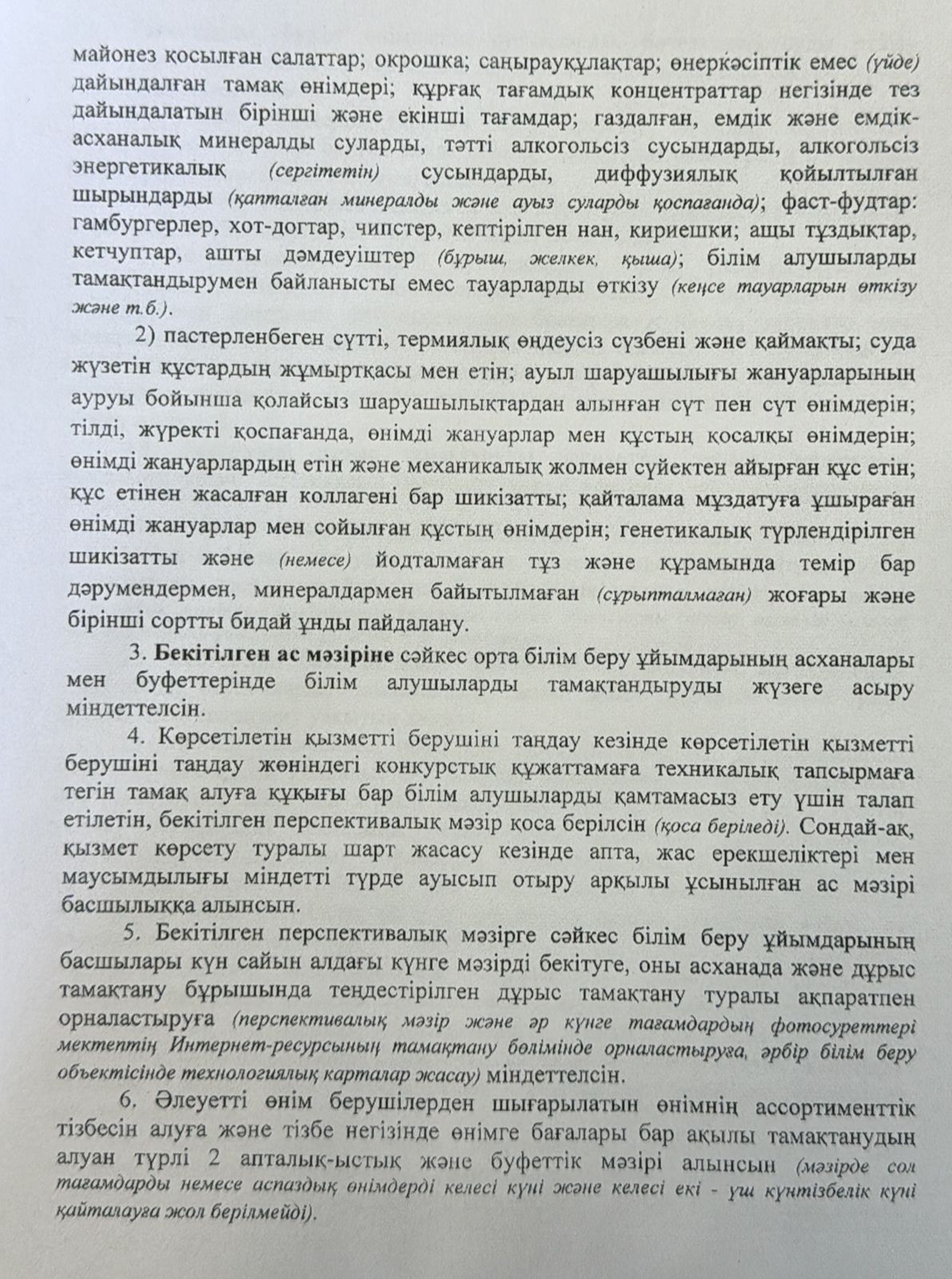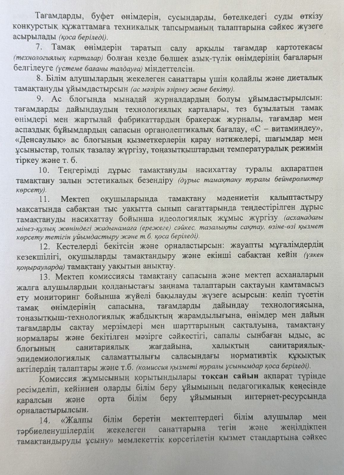 Демонстрационный сайт152 мектеп » Тамақтандыру » Ас мәзірі » Қазақстан Республикасы Оқу - ағарту министрінің 2018 жылғы 31 қазандағы № 598 бұйрығымен бекітілген Орта білім беру ұйымдарында білім алушыларды тамақтандыруды ұйымдастыру қағидалары