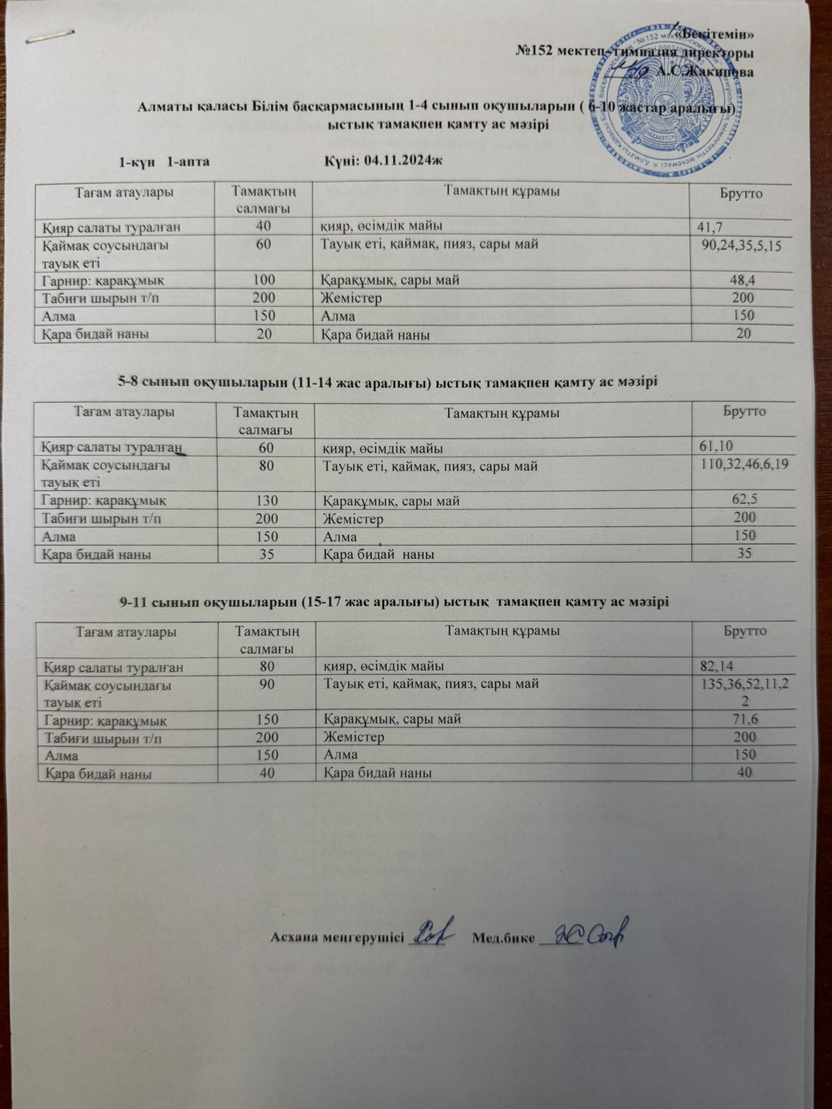04 ноябрь 2024 0 1 2 3 4 5 Алматы қаласы Білім басқармасының 1-4-сынып оқушыларының (6-10 жастар аралығы) ыстық тамақпен қамту мәзірі Осы беттің QR-коды:QR-код этой страницы:
