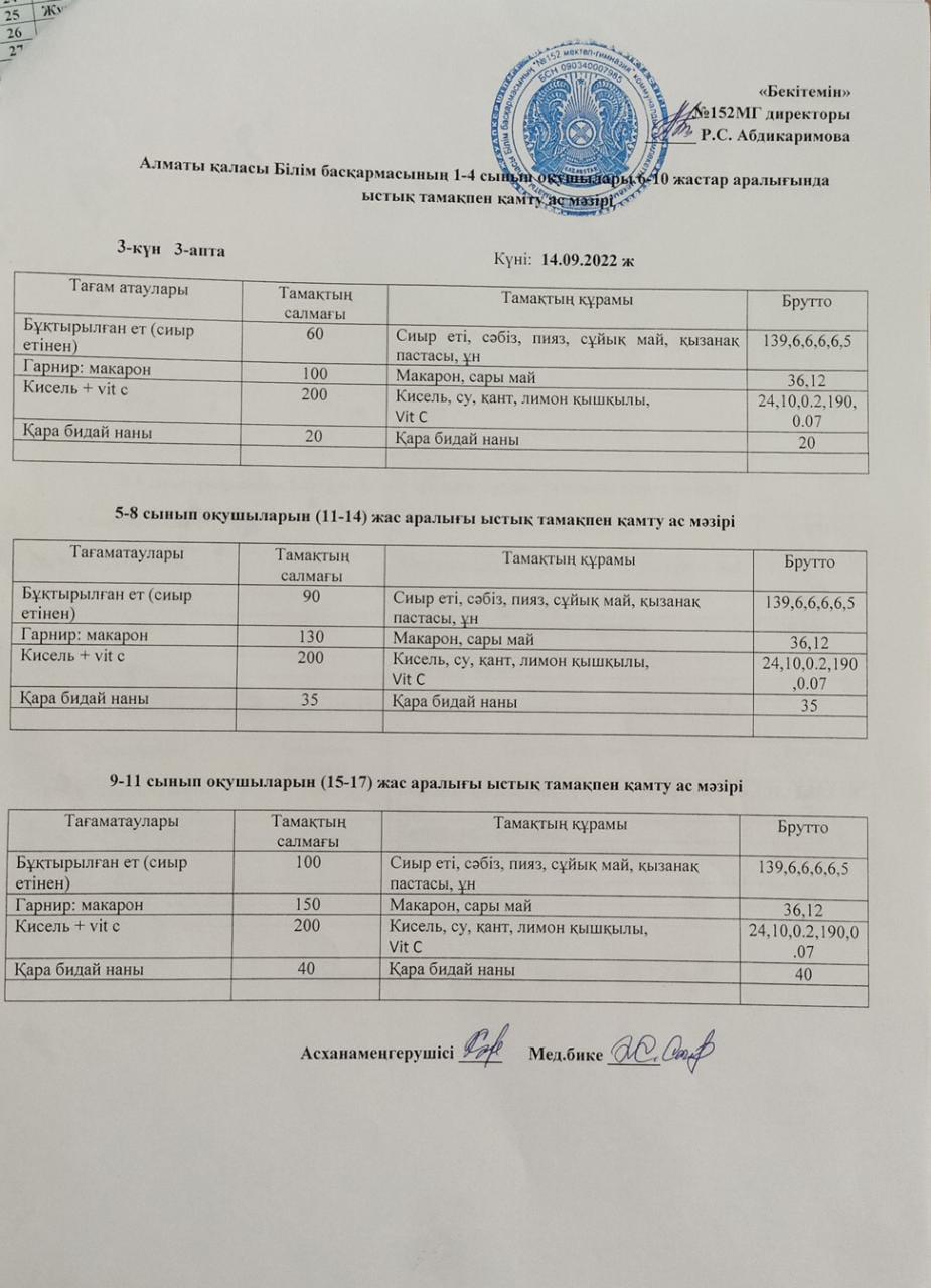 » Ас мәзірі (14.09.2022ж)