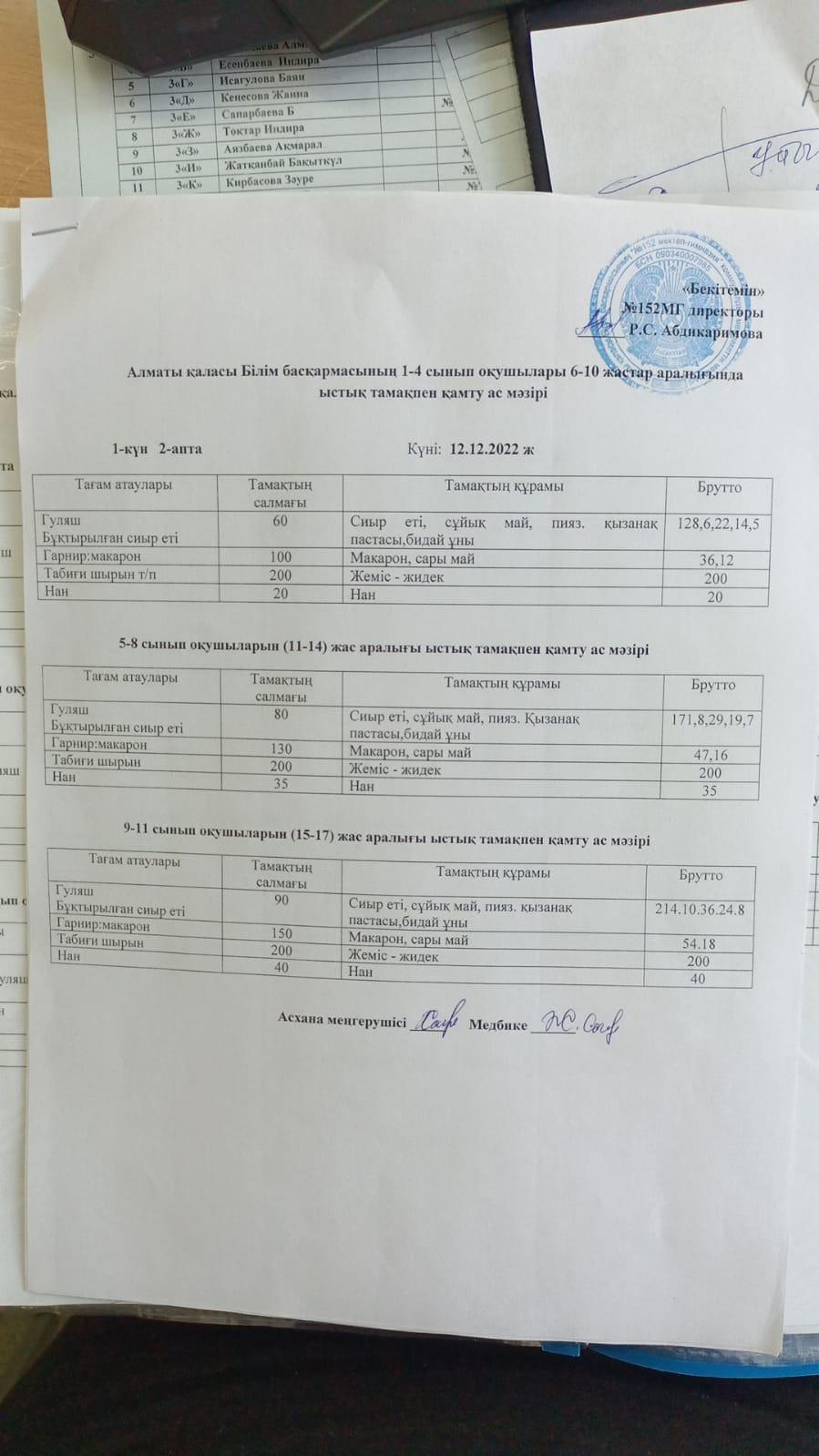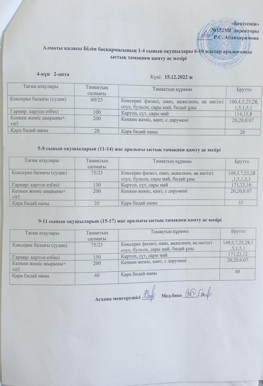 » » » Ыстық тамақпен қамтудың ас мәзірі