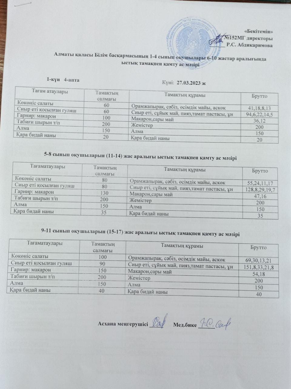 Ас мәзірі (17.01.2023ж)