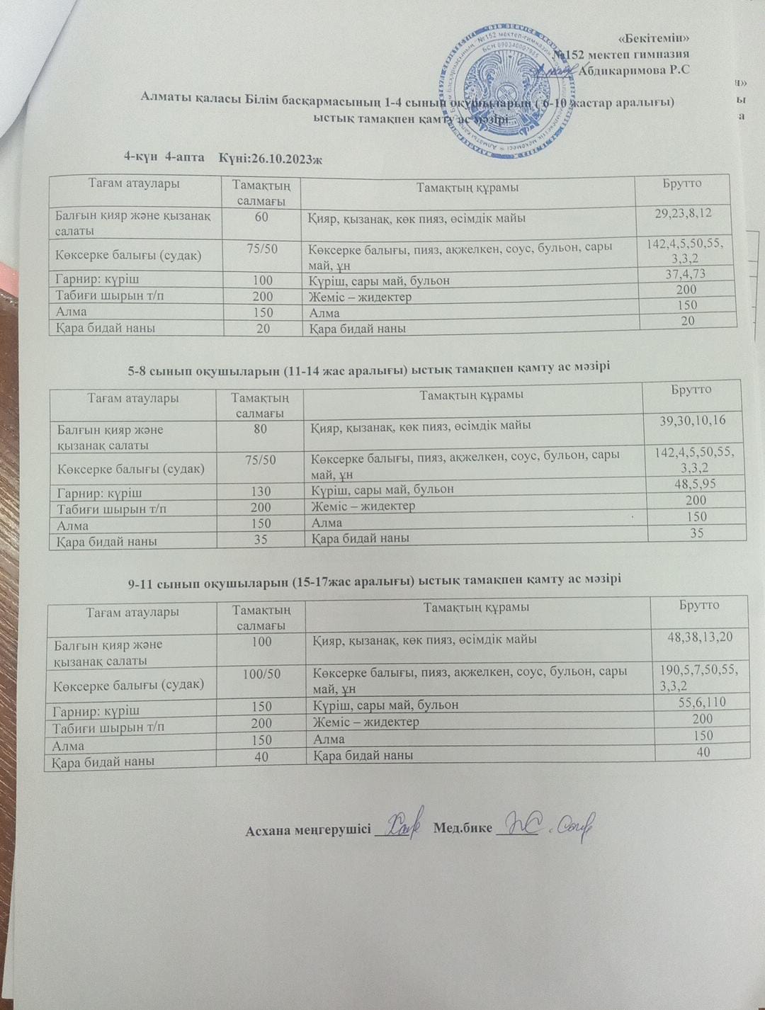 Ас мәзірі 26.10.2023ж