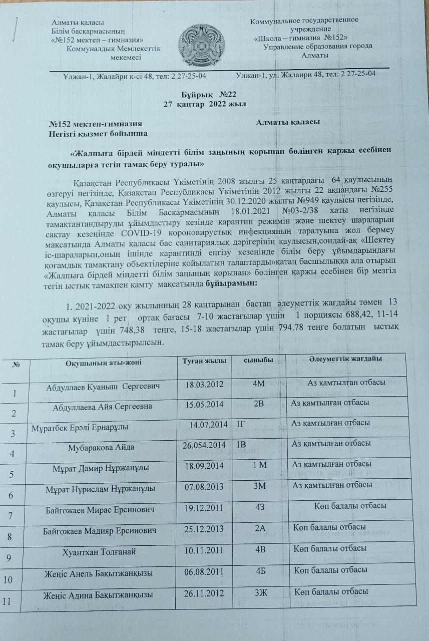 «№152 мектеп-гимназия»
