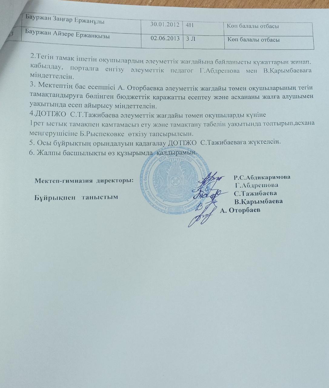 Тамақтандыру Бұйрық №50